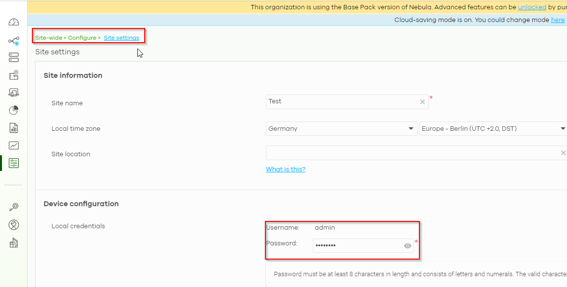 If your Nebula device is online on NCC and the configuration status is "up to date" the username and password will be replaced by NCC configuration.